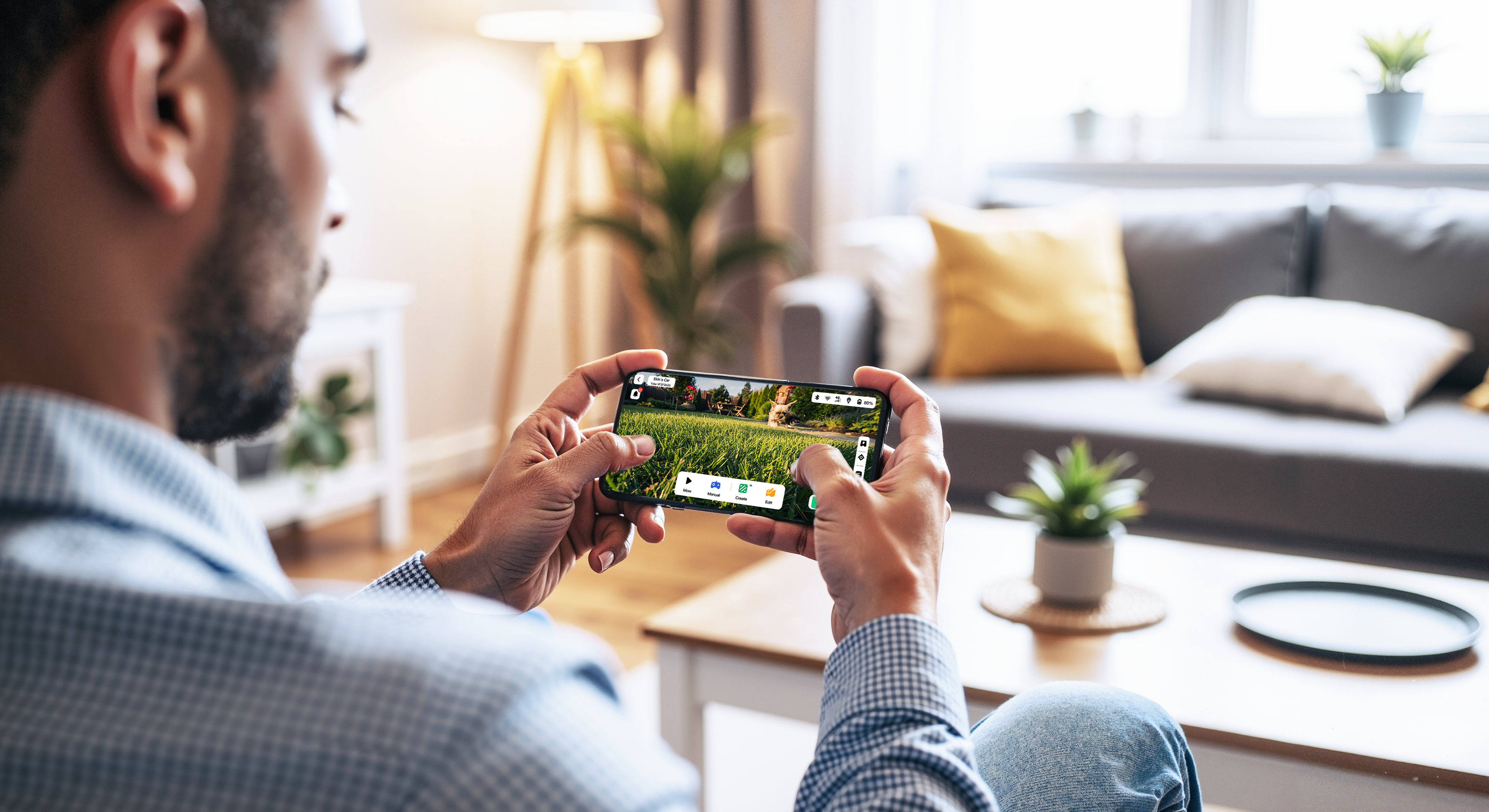 Łatwa obsługa: pełna kontrola przez aplikację, harmonogramy koszenia, wirtualne strefy oraz podgląd FPV i wzory na trawniku.